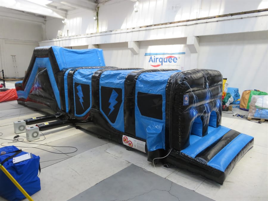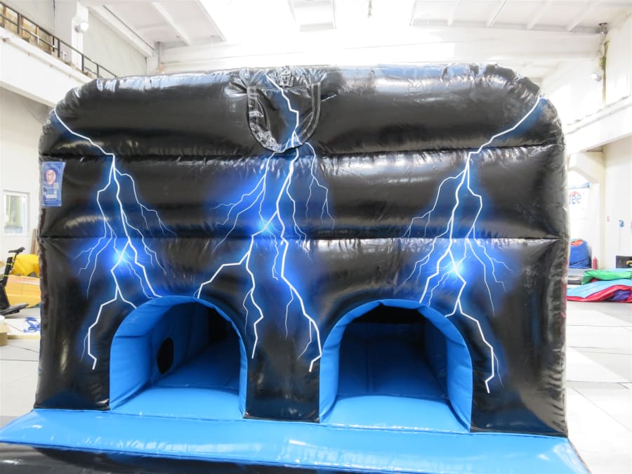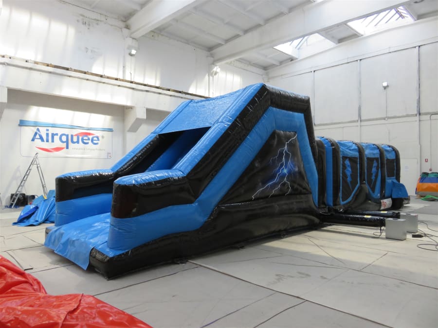 Bring energy and excitement to your event with the Lightning Obstacle Course. This fully enclosed, weather-ready unit features an integrated rain cover, multiple challenging obstacles, and an attention-grabbing 8ft slide. At 42ft long, it fits most gardens and turns ordinary gatherings into unforgettable celebrations. Perfect for birthday parties, communions and confirmations.