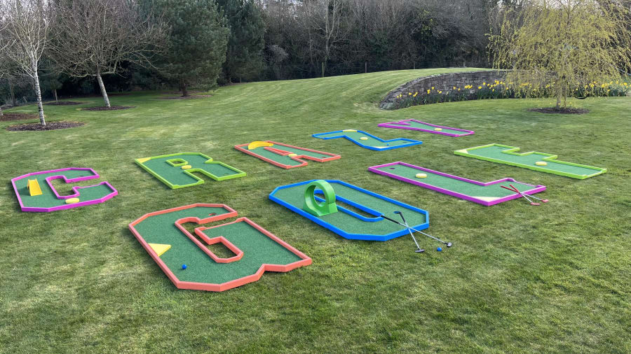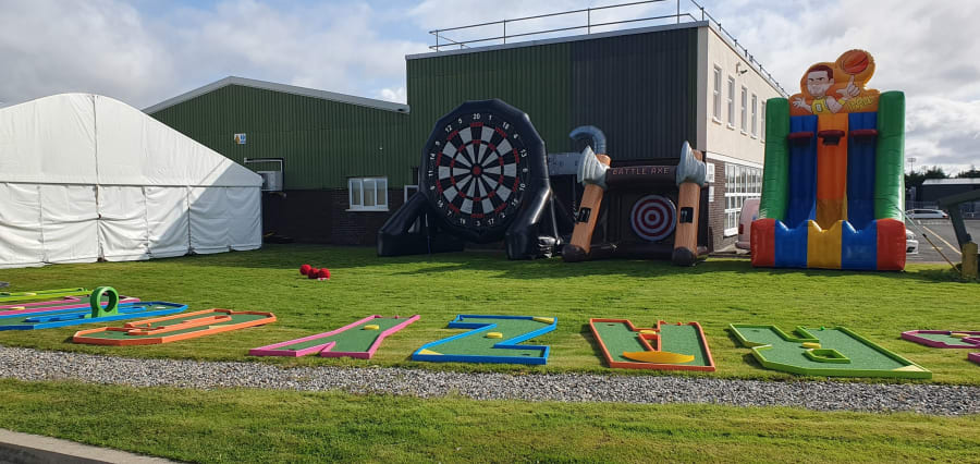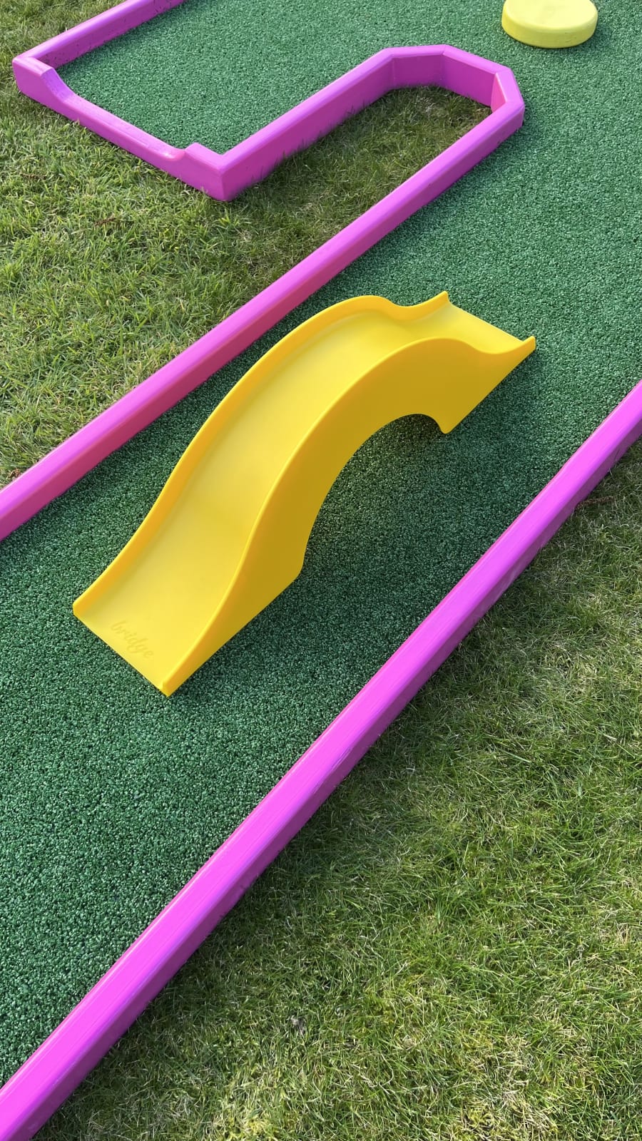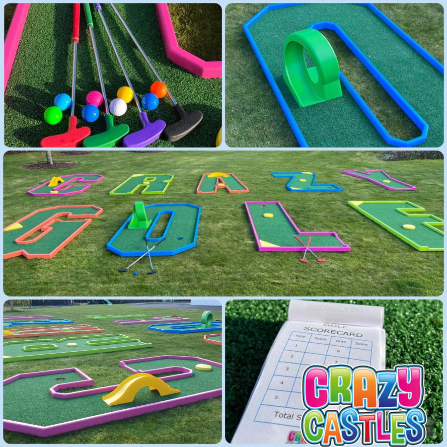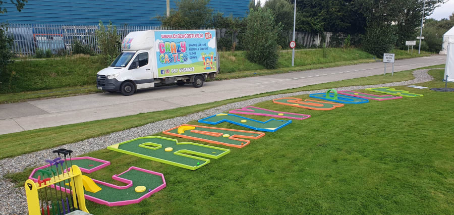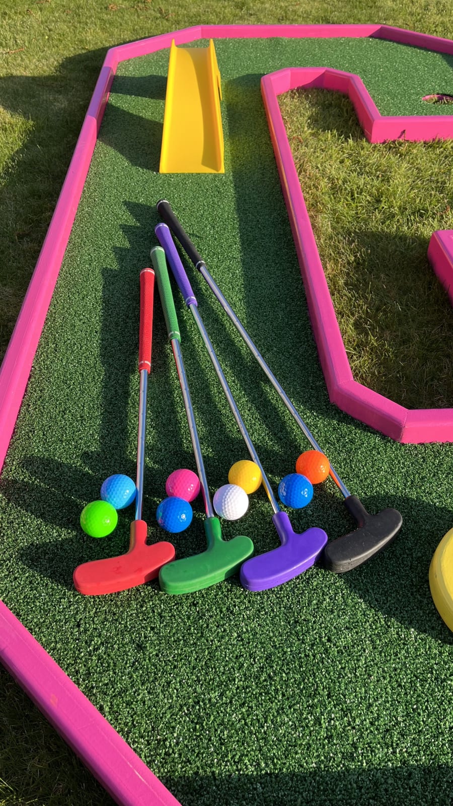 Our mobile mini golf course is great fun for all ages. Full of color and strategically placed obstacles our premium crazy golf course will provide great entertainment for all types of events: