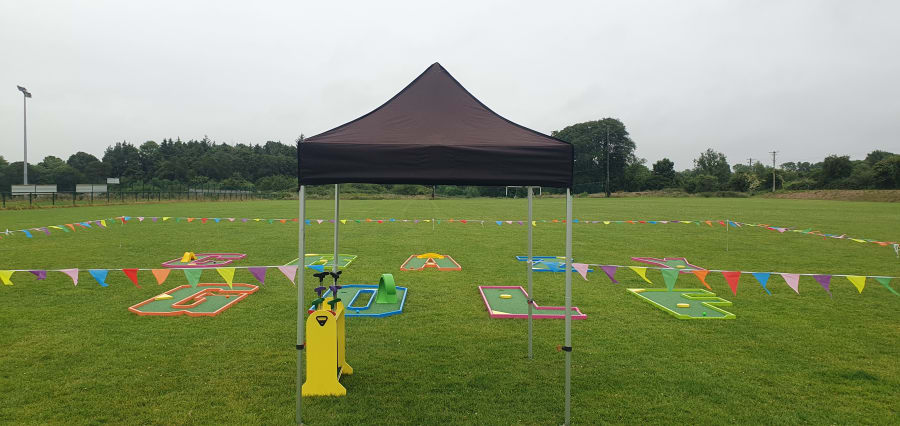 We can add colourful bunting and a gazebo to frame the course for an additional fee — please contact us for details and preferences.
