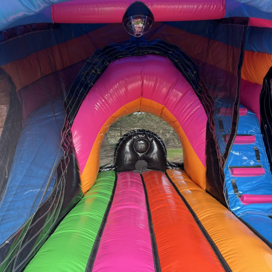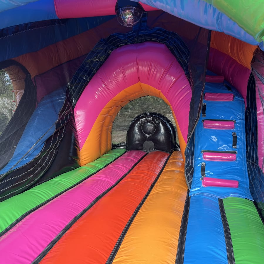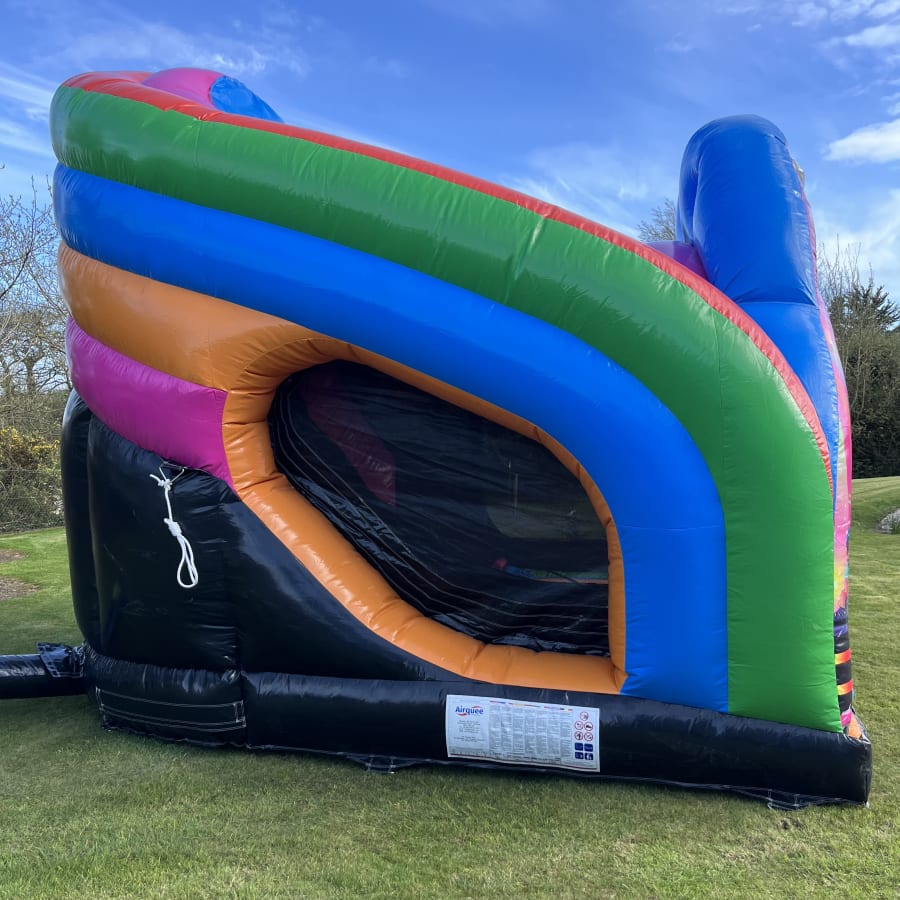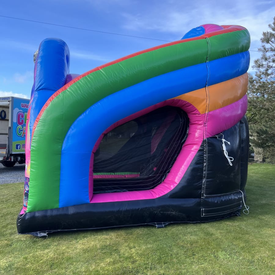 With its generous dance floor and multi-coloured design the Disco Club II Bouncy Castle offers endless bouncing and dancing fun. The curved 'balcony effect' ladder adds an extra element of enjoyment, while the 8ft inflatable slide provides an exciting thrill for partygoers. Whether you're hosting a birthday bash, communion, or confirmation, this inflatable will keep the fun going all day long. 🎊