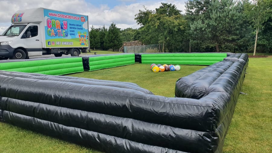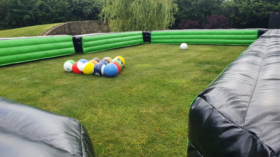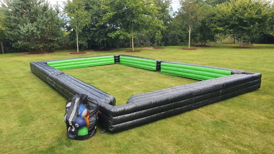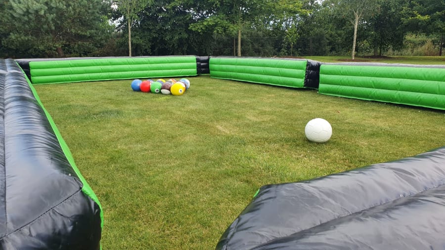 Football Pool brings together the thrill of playing pool with the passion of football on an inflatable surround featuring pockets and size 4 spots n stripes footballs. Whether you're aiming for a corner pocket or a goal, this unique game offers a dynamic and engaging experience for players of all ages and skill levels.