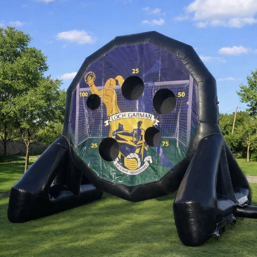 This versatile game offers double the excitement. One side is a classic target for precision kicks allowing players to kick a football at the Velcro target sheet. The other is a hurling/football target sheet, 'Beat the Goalie' style. ⚽🥅 Perfect for schools, sports camps, fundraisers, and more, this game is sure to keep participants entertained for hours. 🌟